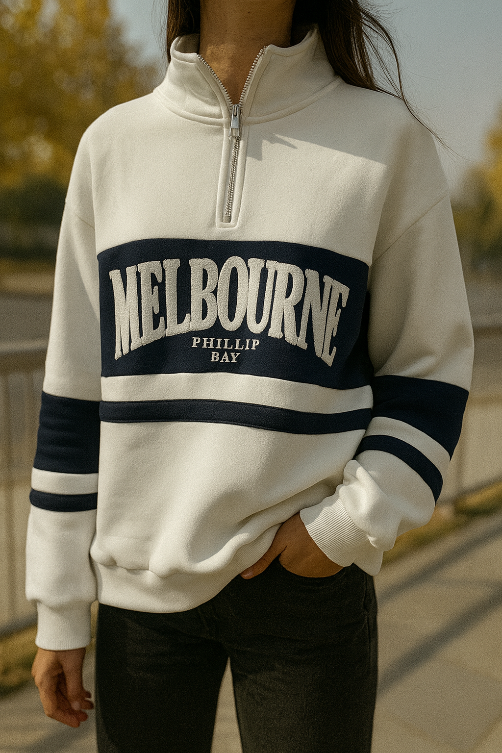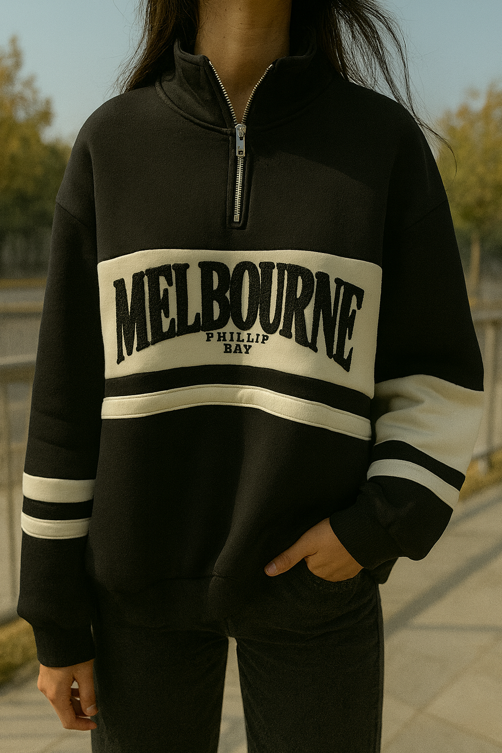 Melbourne Half Zip Sweatshirt – Classic Streetwear with Sporty Elegance