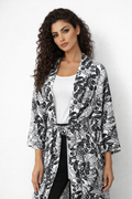 A lightweight kimono-style robe designed with an all-over floral print for an elevated, effortless look. Features wide sleeves, an open front, and a self-tie belt to adjust the fit and style it your way—perfect for layering over everyday outfits or resort-ready looks.