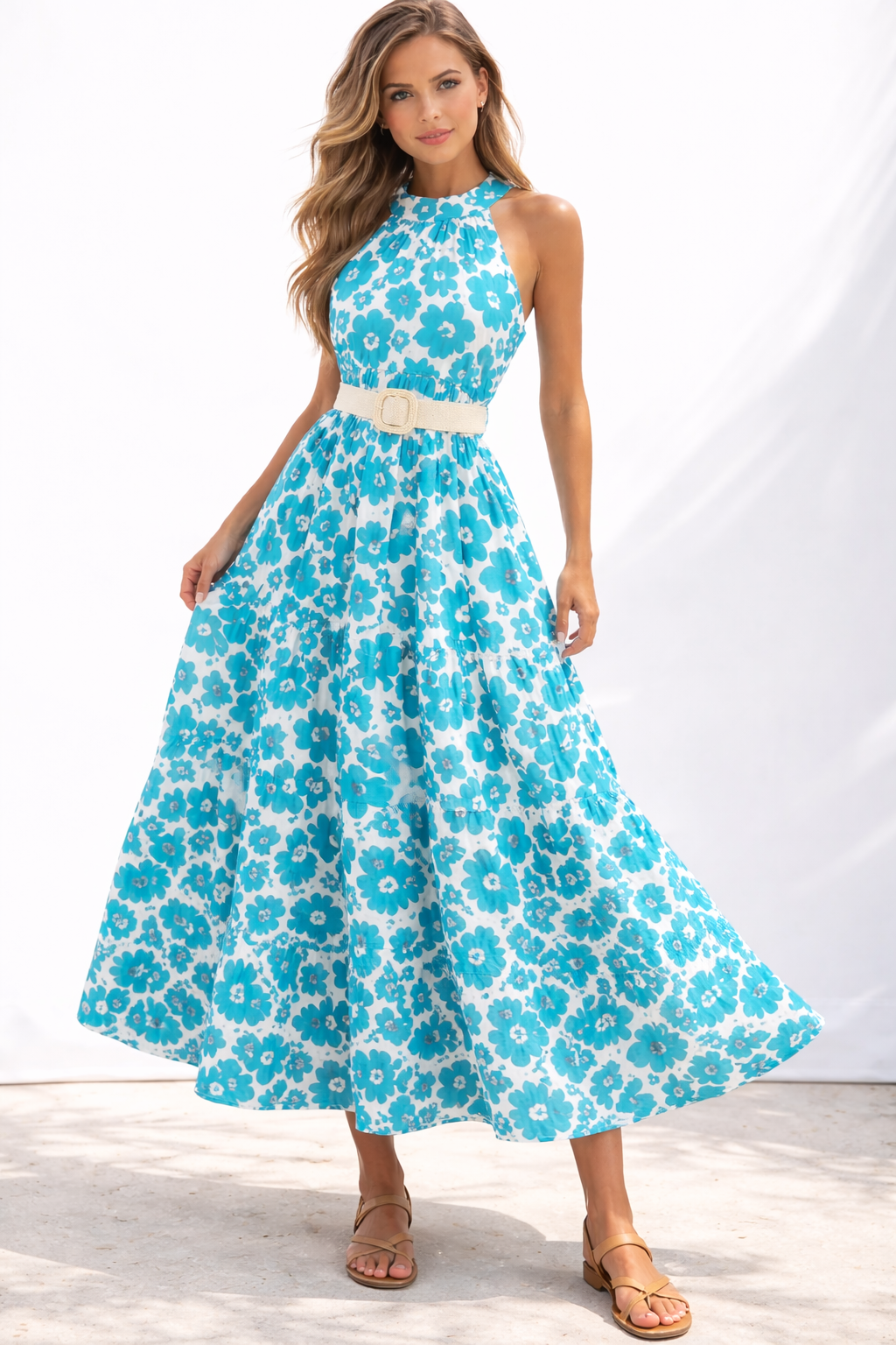 Floral Halter Maxi Dress is your go-to piece for effortless summer elegance. Designed with a chic halter neckline and a waist-defining belt, this maxi dress delivers a fresh, feminine look perfect for any occasion.