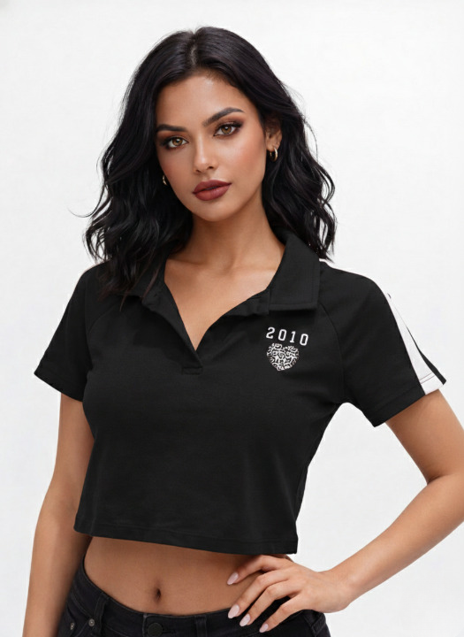Women’s Cropped Polo T-Shirt – Sporty Short Sleeve Top