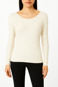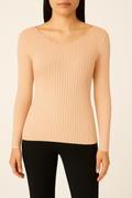 Ribbed Scallop Neck Sweater – Elegant Fitted Knit Top for Women