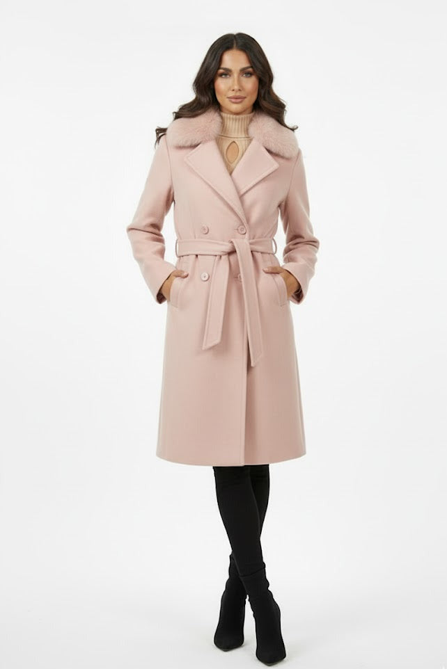 Wrap yourself in luxury with our Wool Coat with Faux Fur Collar, crafted from a soft wool-blend fabric for ultimate warmth and style. Featuring a double-breasted design, waist belt, and detachable faux fur collar, this coat blends timeless sophistication with modern femininity. Features & Benefits of the Wool Coat with Faux Fur Collar Premium Wool Blend: Soft, insulating, and durable for cold winter days. Detachable Faux Fur Collar: Adds a touch of elegance and versatility. Waist Belt: Accentuates the silhouette for a feminine shape. Double-Breasted Design: Classic and refined for polished looks. Midi-Length Cut: Provides full coverage and graceful movement. Color Options: Black Beige Blush Pink Sage Green Light Blue Why You’ll Love It The Wool Coat with Faux Fur Collar combines cozy comfort with refined elegance. Perfect for work, evening outings, or special winter occasions — it’s a statement piece that never goes out of style. How to Style Classic Look: Layer over a turtleneck and tailored trousers. Feminine Chic: Pair with a midi dress and heeled boots. Weekend Elegance: Wear open with jeans and a knit sweater. Care Instructions Dry clean only. Do not bleach. Store on a hanger to maintain shape. Sizing Information True to size – includes adjustable waist belt. Model wears size S. Customer Reviews “The faux fur collar feels so soft and looks incredibly elegant!” “Perfect winter coat — warm, classy, and goes with everything.” Classic Warmth. Modern Elegance. Redefine winter sophistication with the Wool Coat with Faux Fur Collar — the perfect outerwear for timeless beauty and confidence. 🛍️ Shop now to stay warm in style!